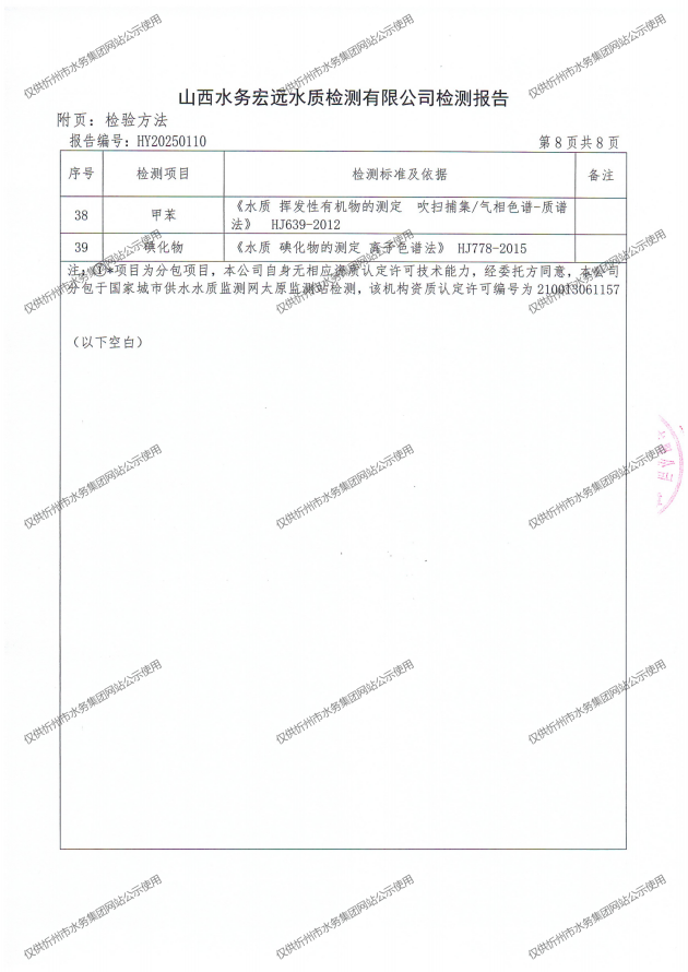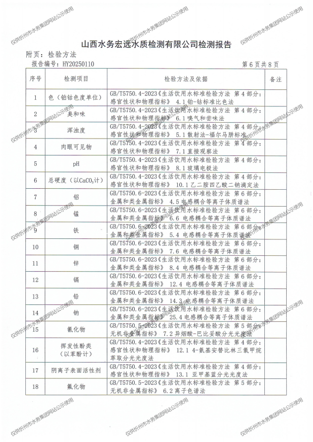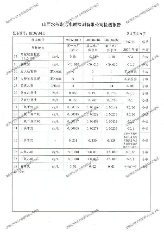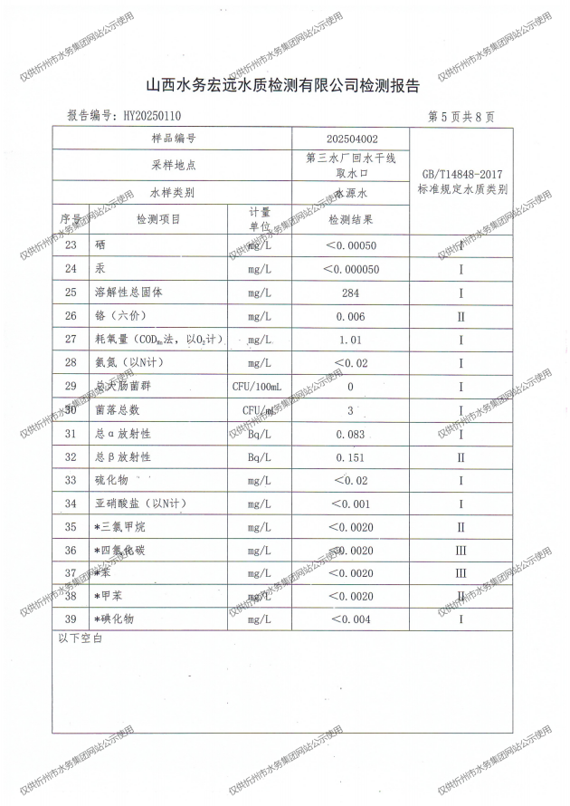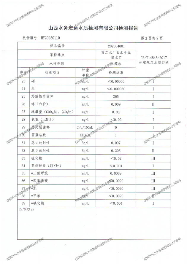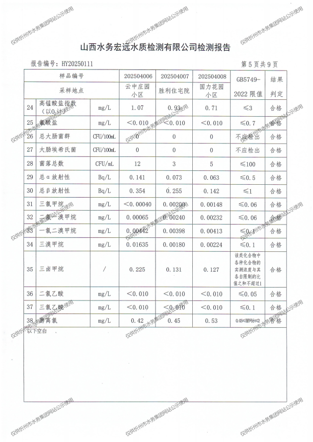 忻州城區(qū)公共供水水源水、出廠水、管網(wǎng)水、管網(wǎng)末梢水2025年4月份水質(zhì)信息公示