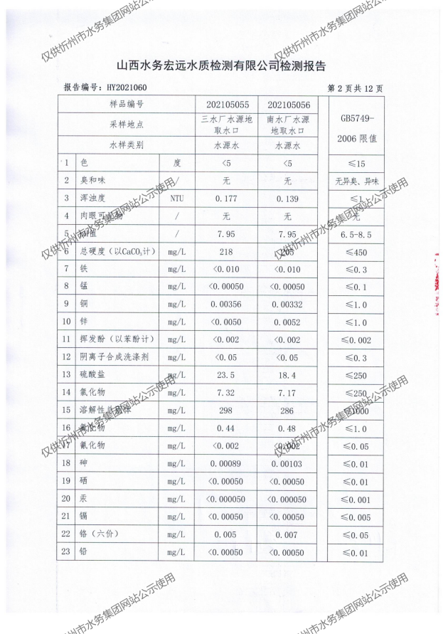 忻州城區(qū)公共供水水源水、出廠水、管網(wǎng)水、管網(wǎng)末梢水2021年5月份水質(zhì)信息公示